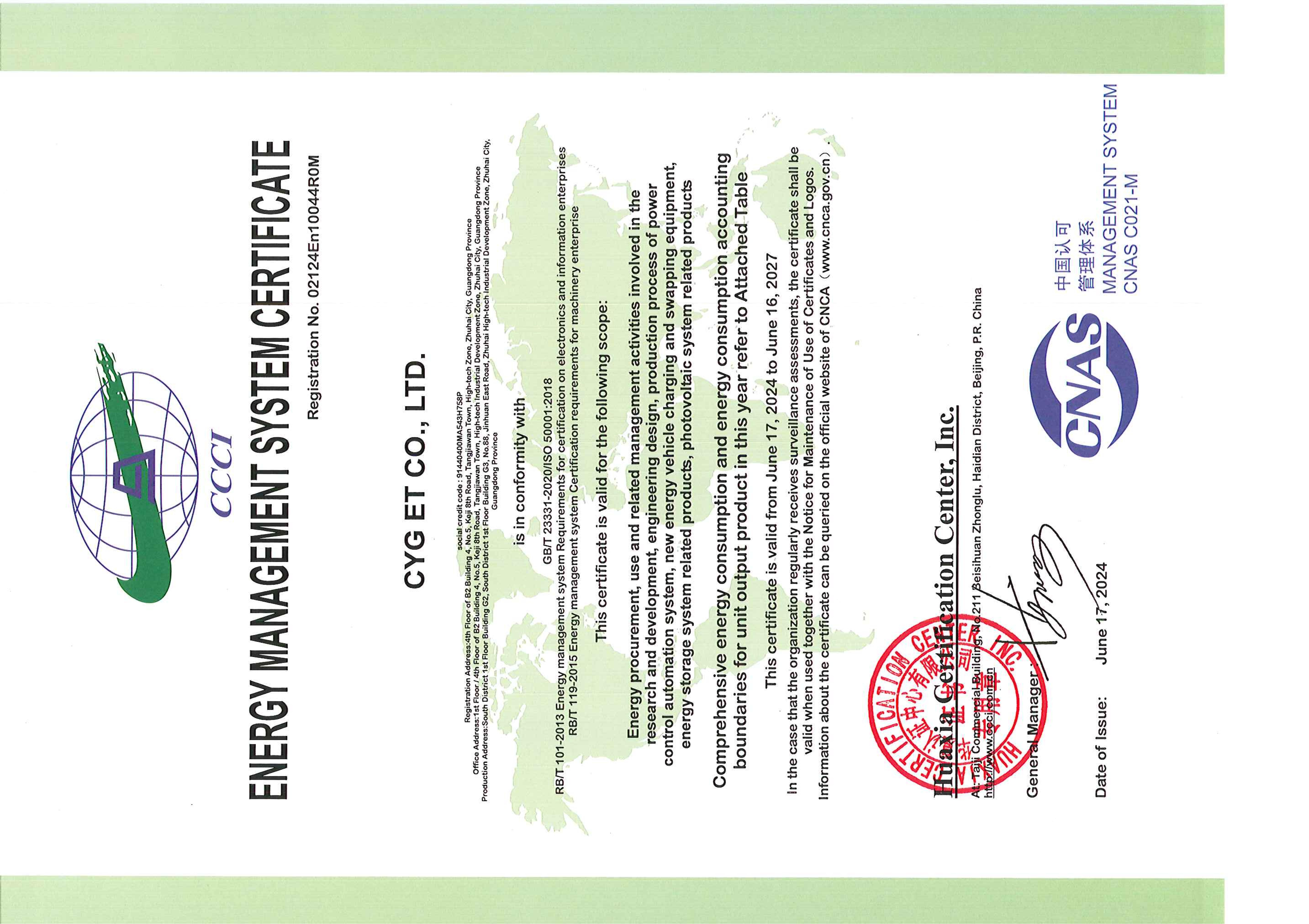 365钱包高能荣获能源管理体系认证证书