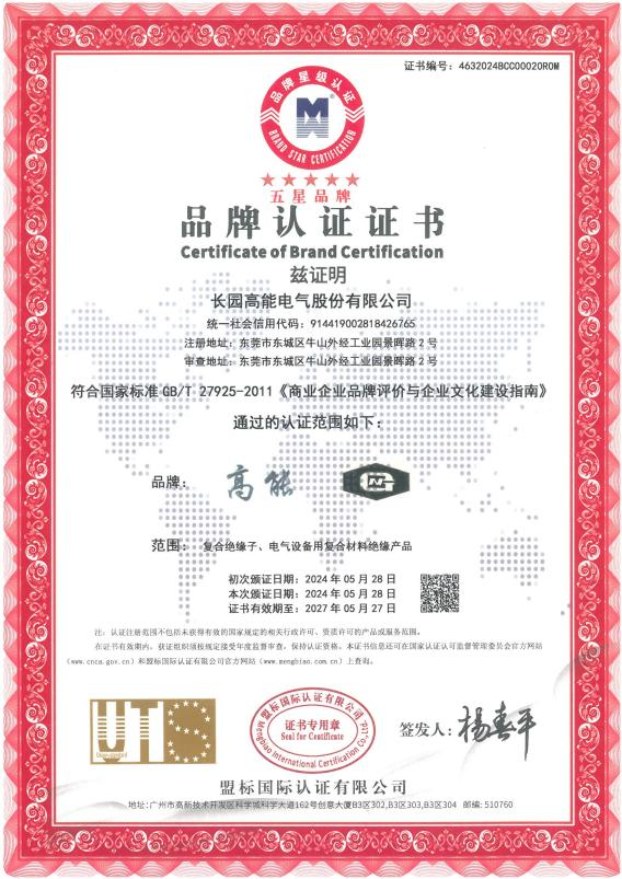 365钱包高能荣获五星品牌认证证书